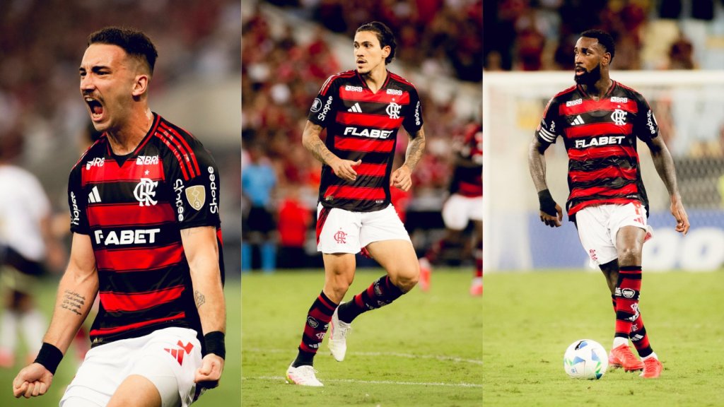 Léo Ortiz, Pedro e Gerson. Crédito: Adriano Fontes/Flamengo