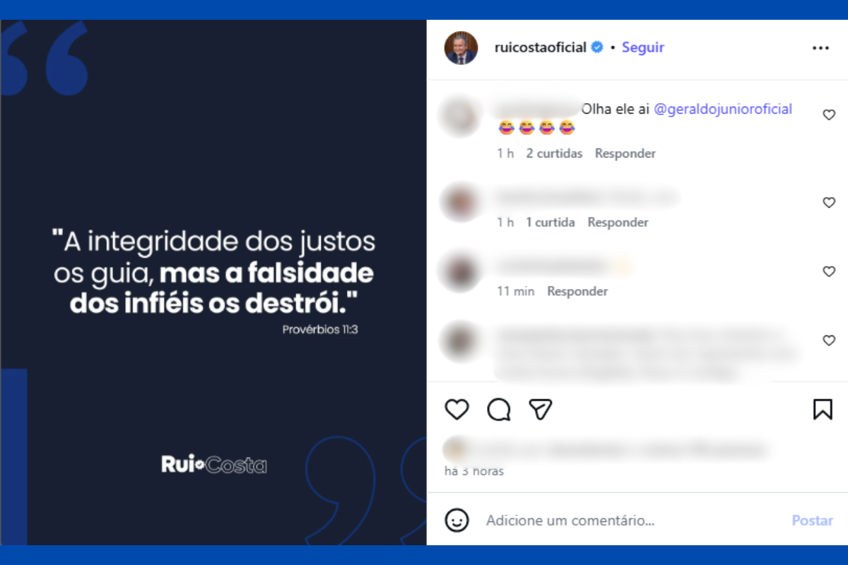 Internautas reagiram à publicação recente de Rui Costa e ironizaram o pedido de desculpas de Geraldo Júnior. "O ministro não acredita em 'equívoco tecnológico', escreveu um. "Olha ele aí, Geraldo Júnior", brincou outro ao mencionar as redes sociais do vice-governador.