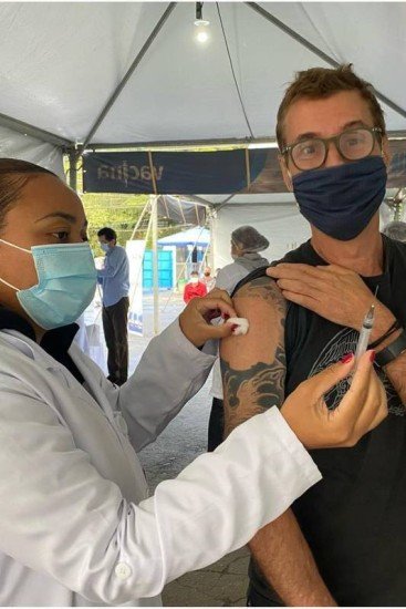 Aos 57 anos, Dinho Ouro Preto, vocalista da Capital Inicial, compartilhou ontem com os fãs a rotina após ter testado positivo para o coronavírus. Mais de um ano após ter superado a doença, o artista mostrou o momento em que recebeu o imunizante. "Enfim vacinado. Sim. Que alegria e que alívio", resumiu ele, através da internet, sobre o momento em que o imunizante foi aplicado no posto de atendimentonfim vacinado. sim! que alegria e que alivio. O artista mora em São Paulo.