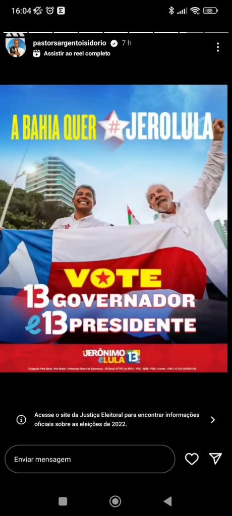 Deixou a comunidade petista exaltada, a foto de Pastor Isidório com adesivos de... ACM Neto! Apesar de na foto poder ser vista uma estrelinha do PT - bem mais escondida do que o 44 de Neto - até onde se sabe, o candidato de Lula é Jerôôôônimo e no próprio Instagram de Isidório o animado deputado fez questão de postar o "JeroLula". Mas na hora de votar... Só Deus sabe que botão ele apertou!!