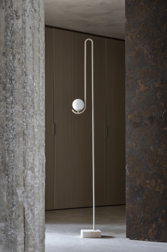 Produzida em aço tubular com pintura eletrostática, a peça está disponível nas cores preto, areia e azulJacque, com bases que variam entre o mármore Piguês e o Travertino Romano. Leve e delicada, a Mandú ilumina com sensibilidade e propõe novas proporções de presença. Uma peça que, como o personagem que a inspira, brinca com escalas e narrativas do corpo popular brasileiro.