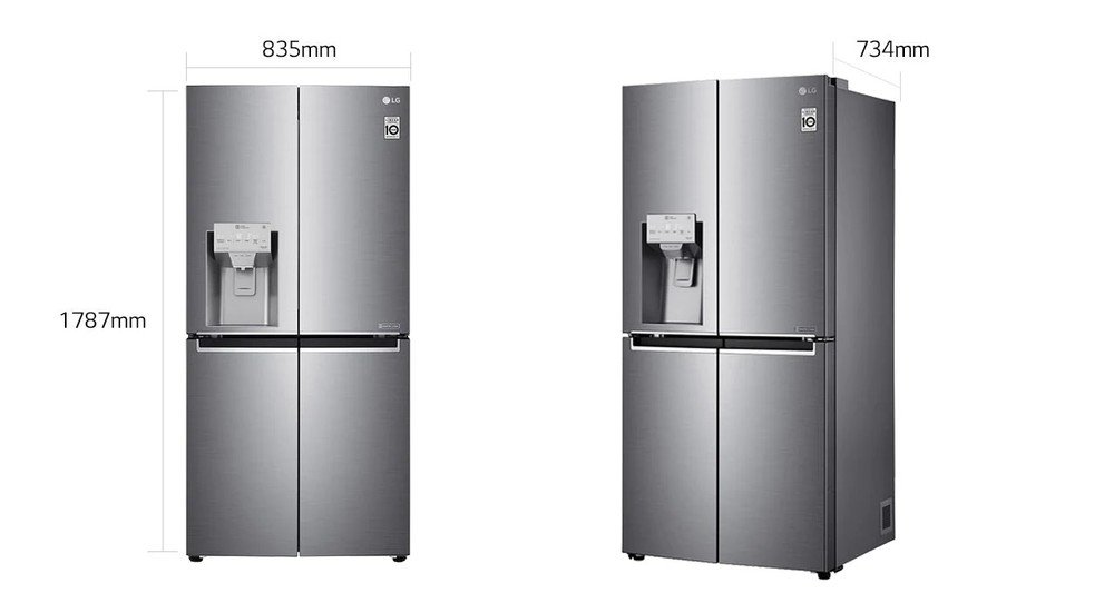 As dimensões também apontam distinção entre as geladeiras. As proporções da LG são menores, com 83,5 x 178,7 x 73,4 cm. Já o modelo da Samsung traz 90,8 x 182,5 x 73,3 cm nas especificações.