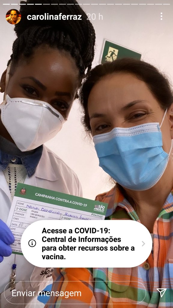 Eu sou ryca! Carolina Ferraz recria meme ao ser vacinada contra Covid-19