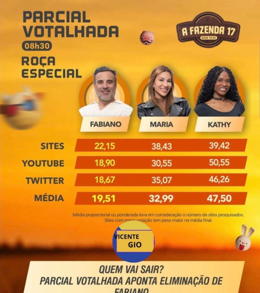 Pega fogo cabaré! Fabiano, Kathy e Maria estão na roça surpresa e enquetes indicam que Fabiano será o próximo eliminado do programa.