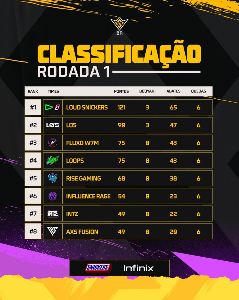 Mas se a LOS conseguiu estender a vantagem para cima dos adversários a situação ficou complicada na quinta queda, afinal, a equipe enfrentou o Fluxo no começo da partida e foi eliminada muito cedo em um Top 12. Já a LOUD aproveitou a oportunidade, se manteve unida até o final da queda e conquistou o Booyah com 16 abates.