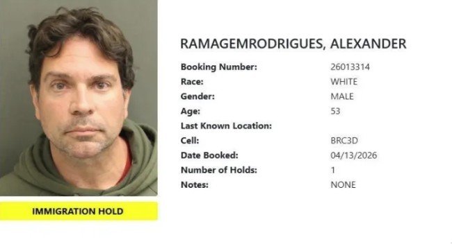 A foto foi registrada no banco de dados do estado da Flórida. O ex-parlamentar foi preso por "immigration hold", ou seja, por questões de imigração.