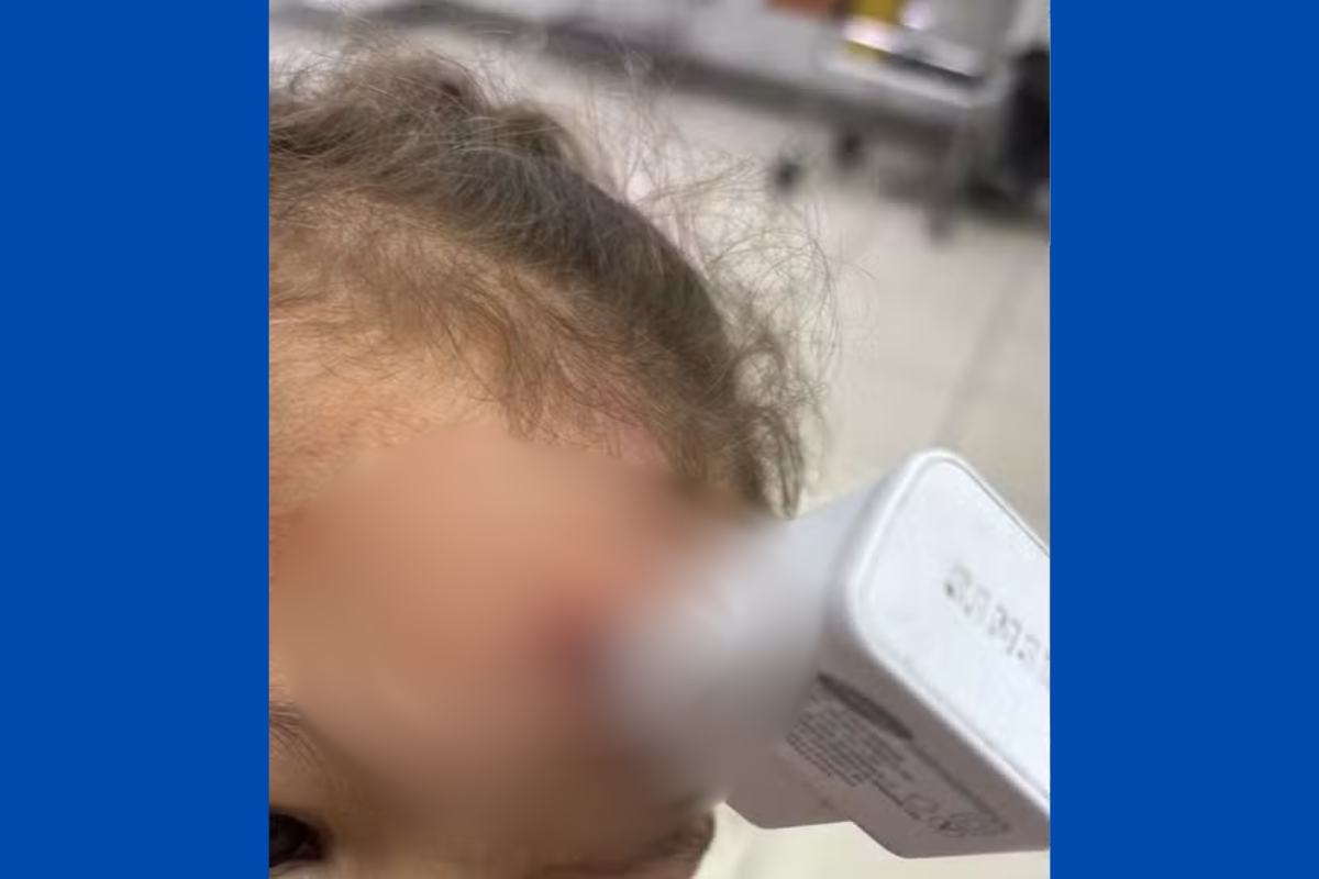Imagem forte: menina de 1 ano cai de cama e fica com carregador cravado na testa em Minas Gerais