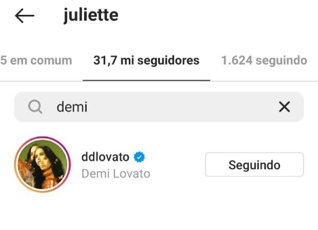 Juliette é seguida por Demi Lovato