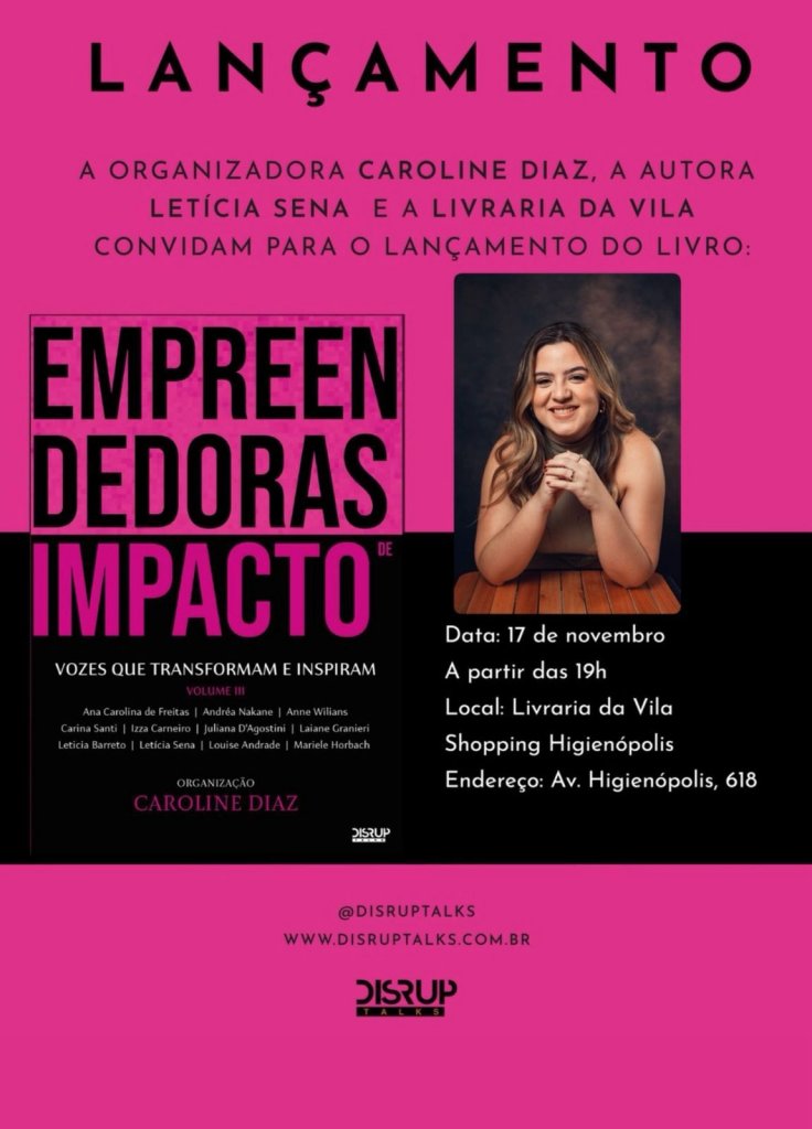 Fonoaudióloga e empresária, Letícia Sena compartilha sua trajetória de inovação e inclusão no terceiro volume da coleção Empreendedoras de Impacto – Como mulheres visionárias transformam negócios e inspiram gerações, publicado sob o selo DISRUPtalks, da publisher Caroline Diaz.