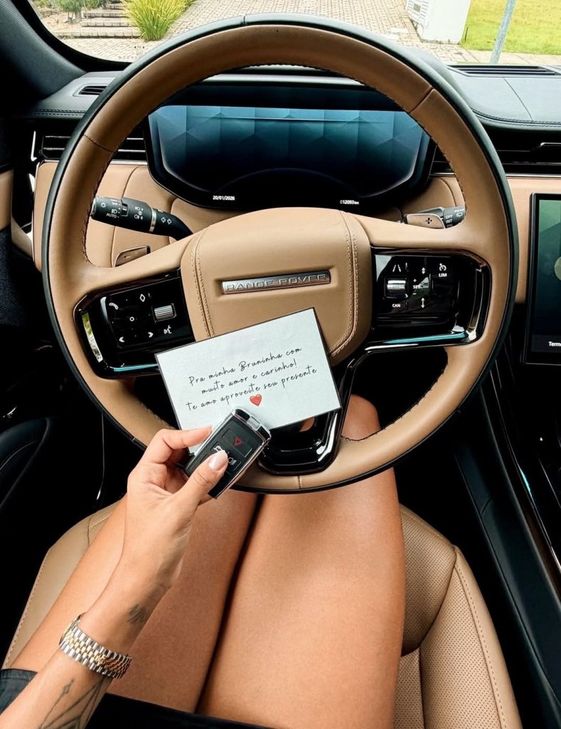 Brunna Gonçalves contou que foi surpreendida pela esposa, Ludmilla, com um presentão daqueles: um carro avaliado em cerca de R$ 1,2 milhão.  A dançarina não escondeu a felicidade ao mostrar o automóvel aos seguidores. “Eu ganhei o carro dos meus sonhos! Não tenho palavras para agradecer ao meu amor por esse presente! Muito, muito feliz! Te amo, vida”, escreveu.