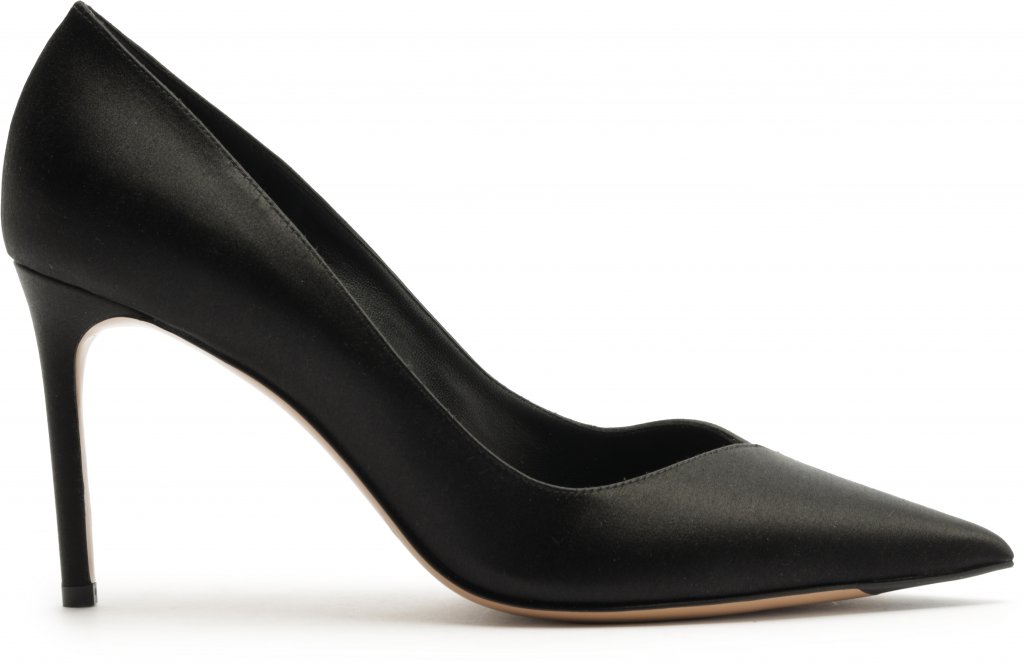 Assinada pela stylist Micaela Erlanger, a escolha traduz uma elegância precisa e atemporal, alinhada ao estilo sofisticado da atriz. O modelo, exclusivo para o mercado US, é confeccionado em cetim e apresenta salto de 85 mm, combinando silhueta clássica com acabamento refinado.