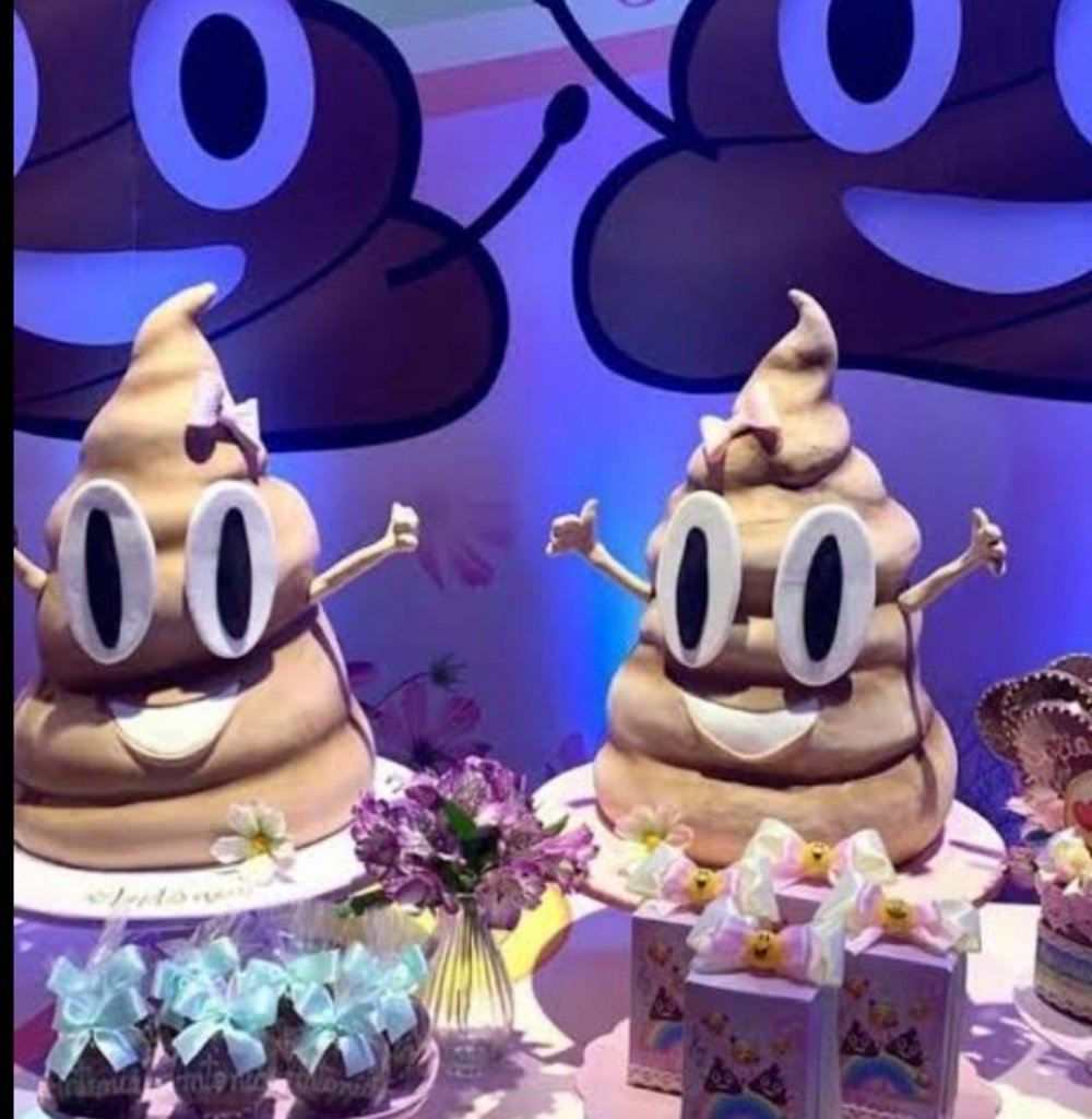 Mas voltando aqui ao "mesversário da pré-candidatura" - assunto palpitante, interessantíssimo e indispensável como pauta política em ano de eleições - para comemorar os 2 meses da PRÉ campanha do Cacázinho, este colunista vai enviar uma sugestão que está em alta nas fextinhas das "criancinhas grifadas" do "Braselll": o emoji do cocô! A foto abaixo é da "fextinha rica" das filhas gêmeas da atriz Geovana Antonelli e está bombando na web, mostrando que o tema "cocô" pode ter tudo a ver com o próximo fofíssimo "mesversário do Cacá"!