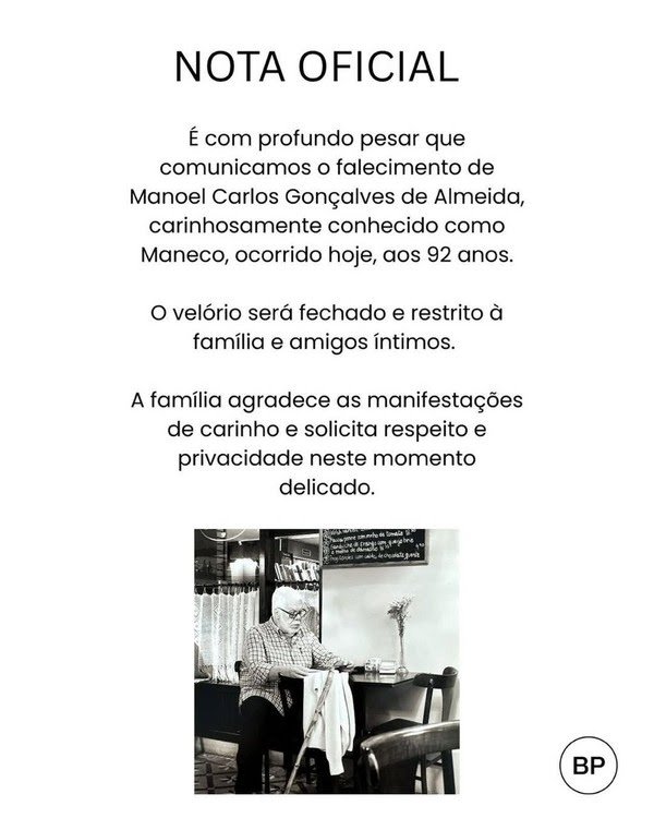 Luto! Manoel Carlos, um dos maiores nomes da teledramaturgia brasileira, morreu aos 92 anos. Ele estava internado no Hospital Copa Star, em Copacabana, onde realizava tratamento da doença de Parkinson, diagnosticada em 2019. O autor ficou marcado por novelas icônicas como ‘Laços de Família’, ‘Mulheres Apaixonadas’ e ‘Por Amor’, além de criar as famosas “Helenas” que conquistaram o público.