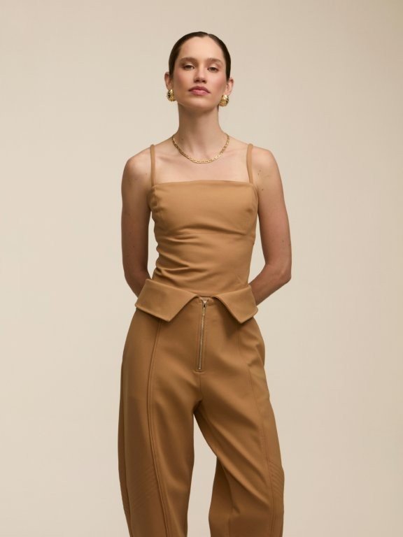 A alfaiataria, carro-chefe da marca, continua sendo desenvolvida com rigor técnico e identidade própria: fios tingidos em cores exclusivas, padronagens autorais, aviamentos personalizados e modelagens que equilibram conforto e precisão. Malhas estruturadas, crepes fluidos e jeans com construção de alfaiataria reforçam a mistura entre o despretensioso e o sofisticado, assinatura que consolidou a marca nesses quatro anos.