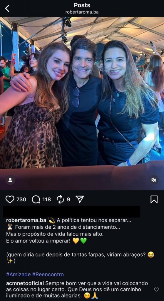 Porque depois de dois anos afastados, a eleição de 2026 os uniu novamente e conseguiu transformar a eleição anterior, cheia de agressividade, xingamentos envolvendo até a família, em "só uma péssima memória ", uma vez que agora Neto e o marido da "bunita" - João Roma - precisam se juntar para tentar derrubar Jerônimo Rodrigues.