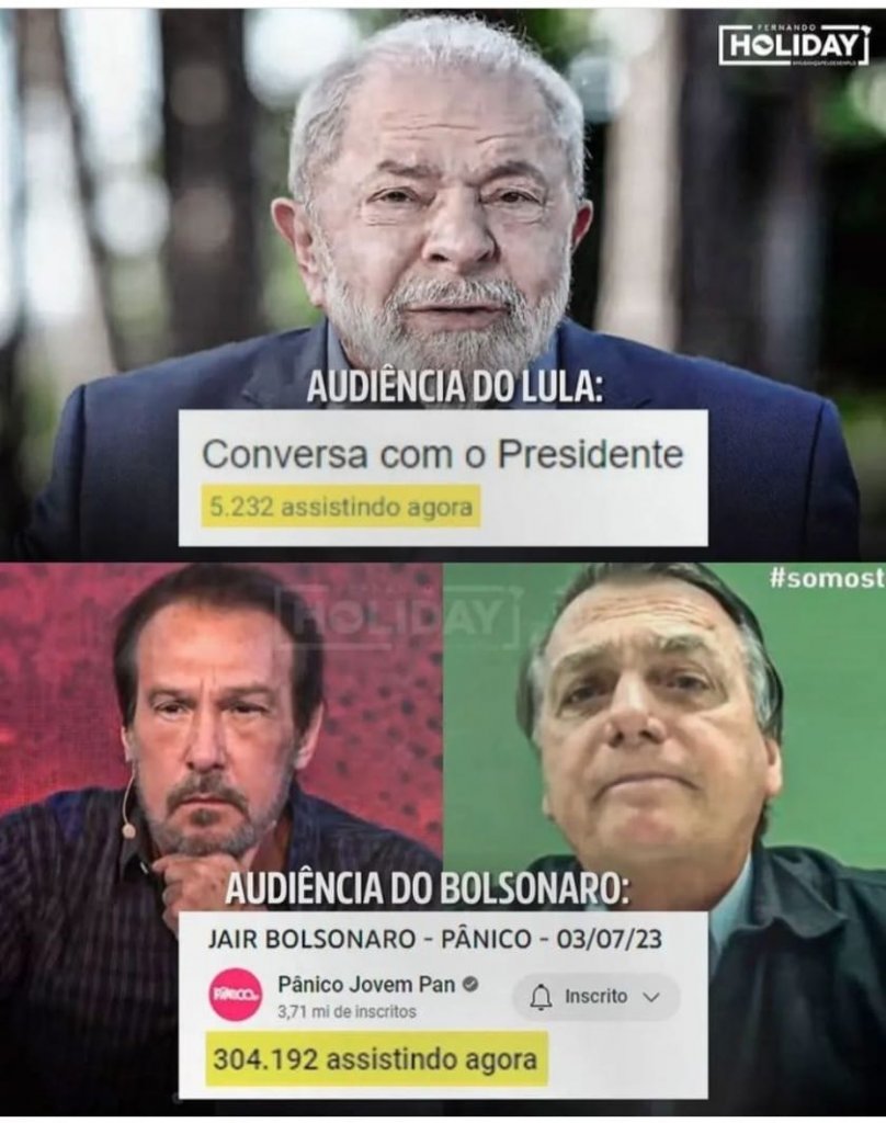 A Internet está em polvorosa diante da diferença absurda na participação em um programa de entrevistas entre a audiência ex-presidente Jair Bolsonaro e do atual presidente, Luiz Inácio Lula da Silva.