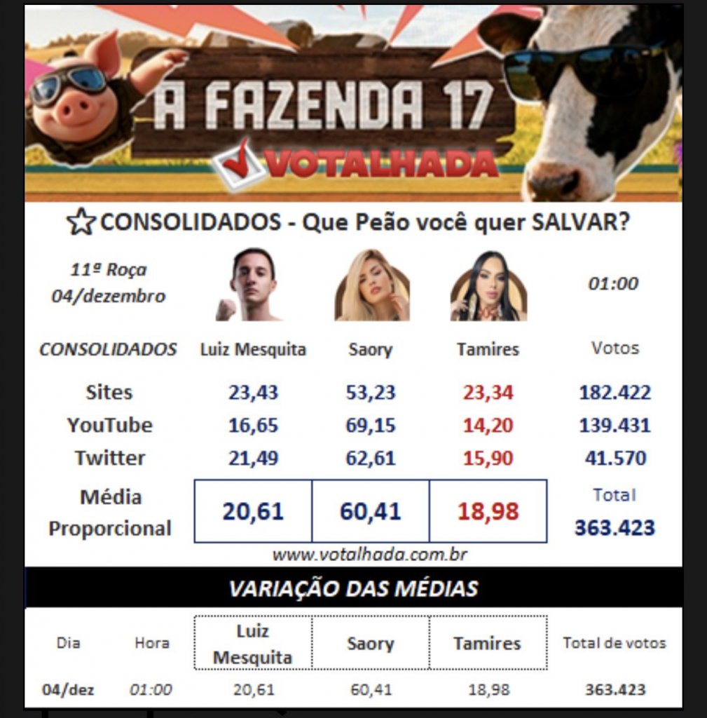 Primeiro parcial das Enquetes, já apontam Tamires eliminada!