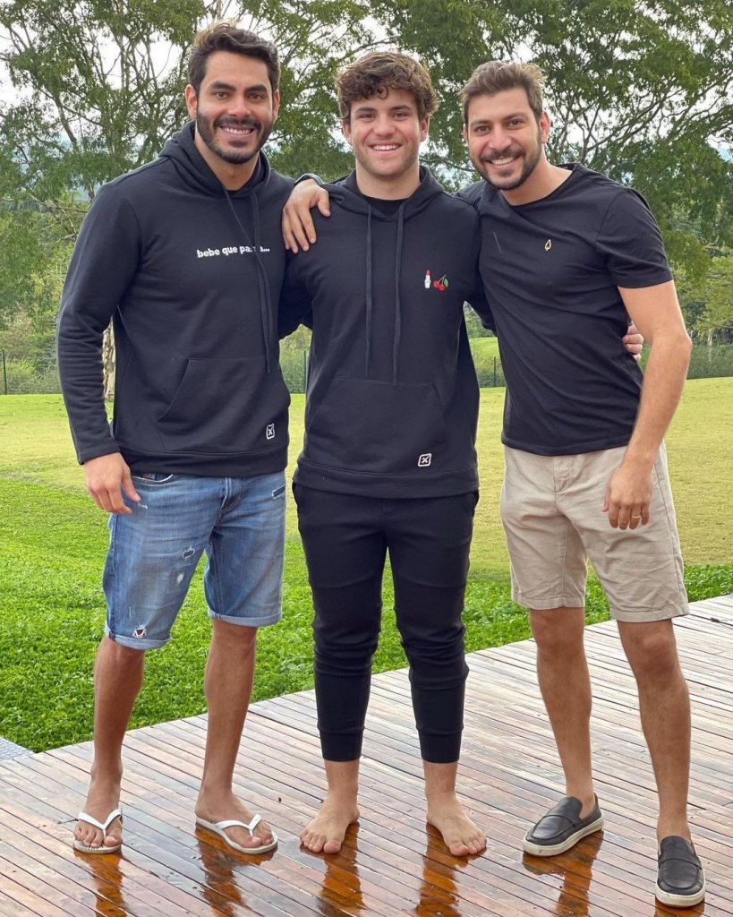 Rubens Barrichello celebra 49 anos com os ex-BBBs Rodolffo e Caio