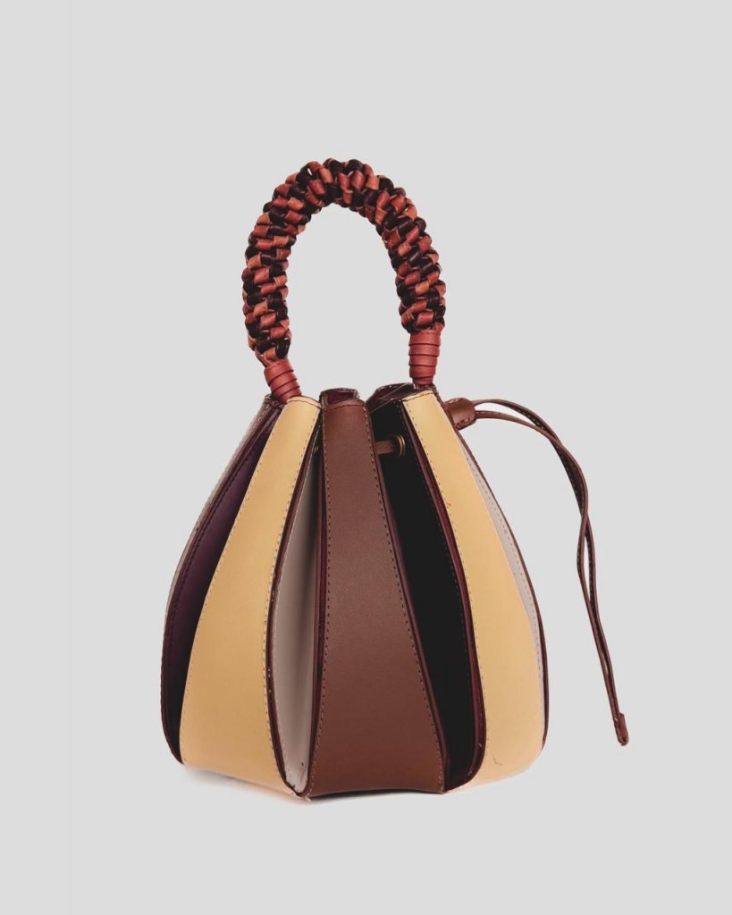 Inspirada nos formatos geométricos do origami, a Okoye se destaca por sua construção tridimensional e design autoral. O modelo bucket, com fechamento em enforcador e alça de mão de 10cm, traduz o equilíbrio entre estética e funcionalidade, característica central do DNA da marca.