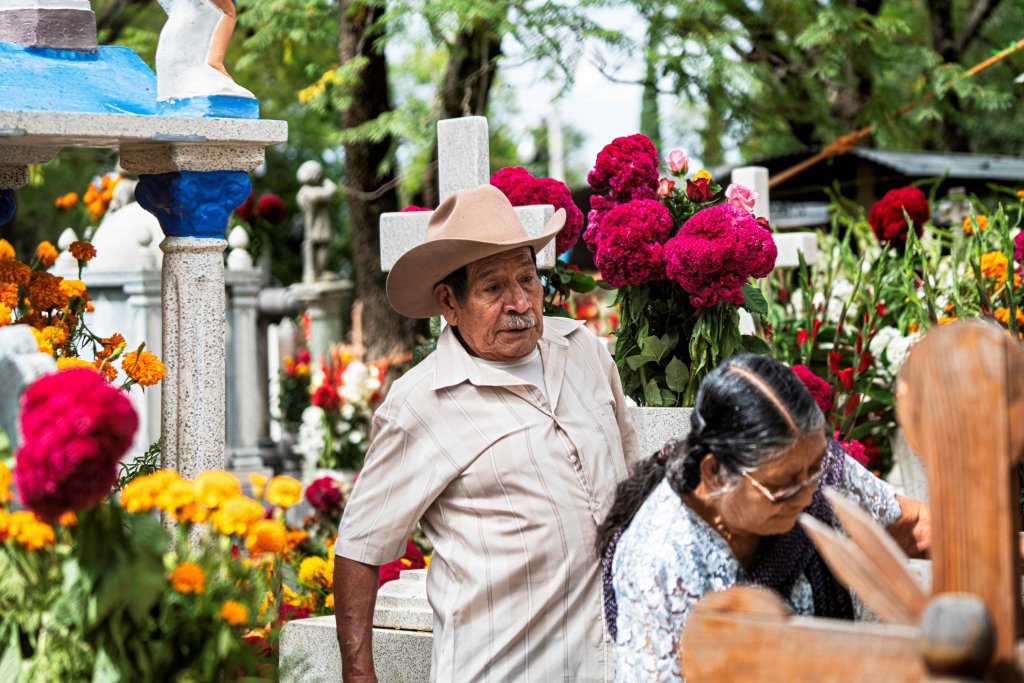 De origem indígena, a celebração mexicana do Día de los Muertos não é um tributo ao fim, mas uma consagração da permanência. Uma comemoração em honra aos mortos, que autoriza as almas a visitarem os parentes vivos. “Elas descem pelos caminhos bordados de flores, guiadas pelo aroma dos alimentos que um dia os nutriram. Reconhecem-se nos retratos antigos, nos cantos murmurados ao entardecer, nos gestos que sobreviveram ao tempo. Não vêm como ausência, vêm como presença silenciosa, como memória encarnada no cotidiano dos vivos”, explica a fotógrafa baiana.