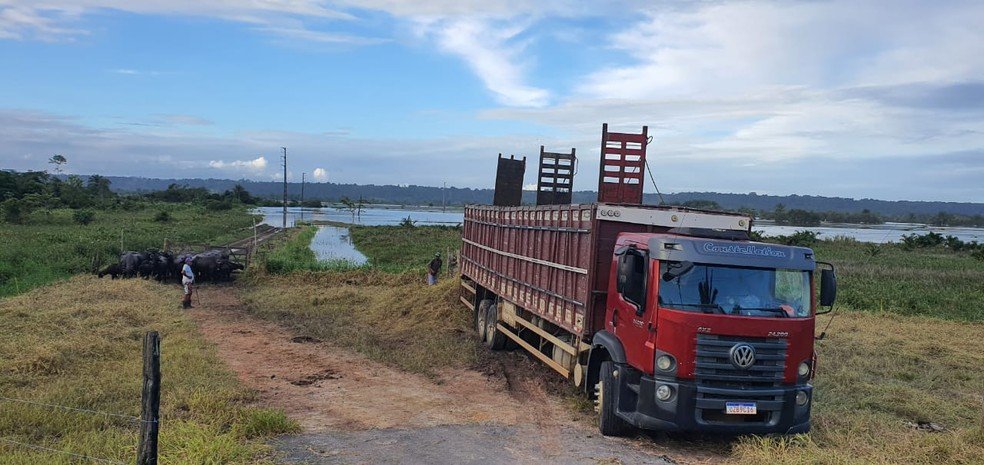Oitenta animais precisaram ser transportados do Vale dos Búfalos para uma região mais alta, após a localidade ficar submersa devido às fortes chuvas que caíram nos últimos dias no sul da Bahia.