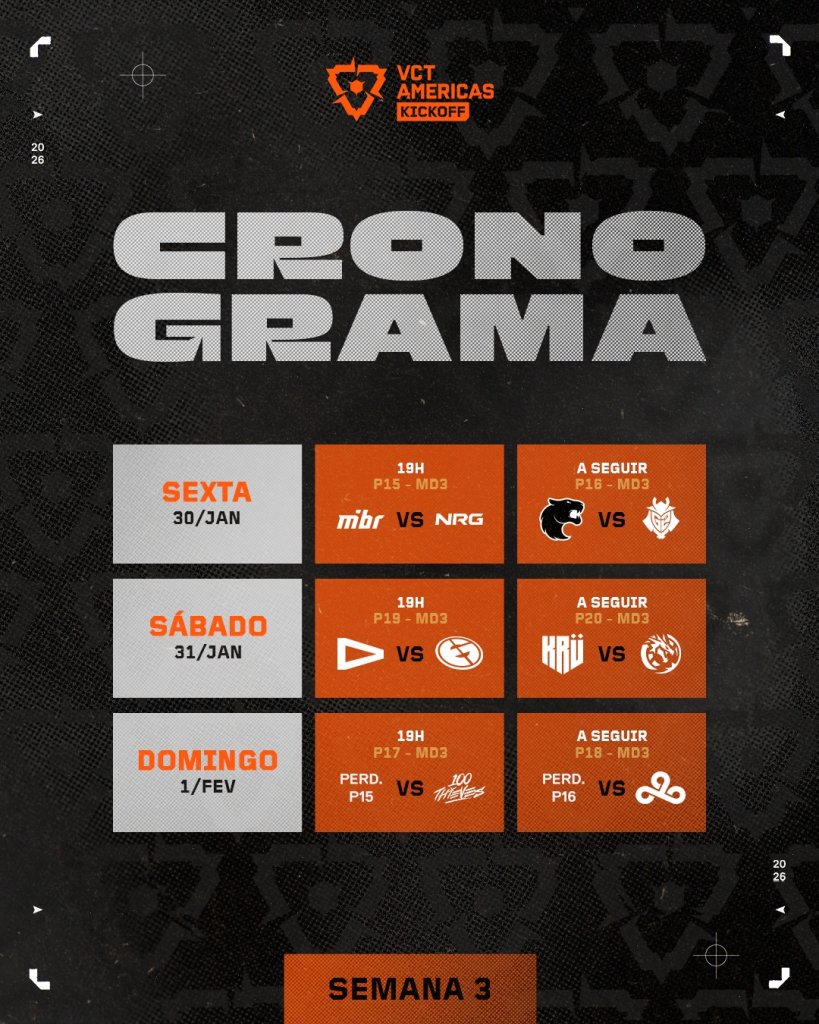 A terceira semana do Valorant Champions Tuor das Américas (VCT AMÉRICAS), contará com muitos embates entre atletas brasileiros, que jogam pela permanência na competição, após serem mandados para a chave inferior. A equipe da LOUD, inclusive, perdeu a série contra a 100 Thieves na segunda semana e chegou na situação mais crítica do torneio.