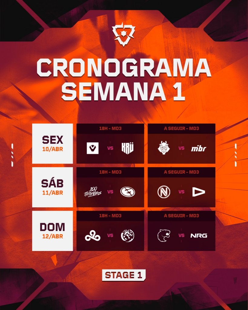 Calendário da primeira semana de competição | Foto: Reprodução/Valorant Esports BR
