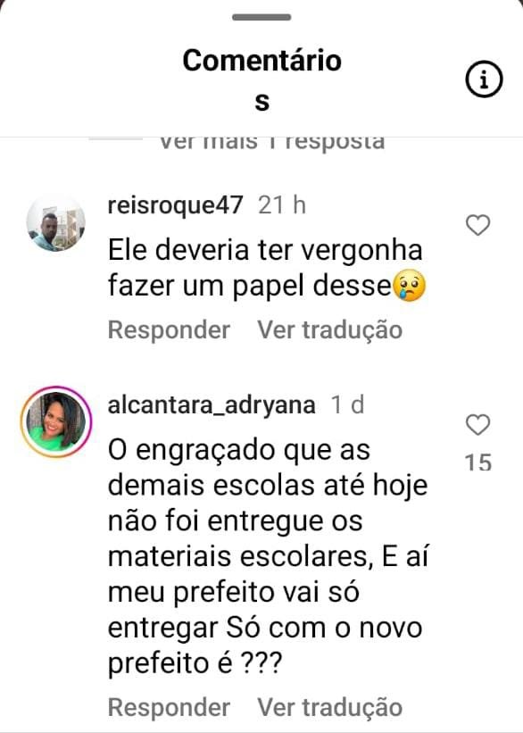Um exemplo perfeito foi a tentativa de comover o eleitor usando a imagem de uma mulher de origem simples recebendo o kit escolar. Seria "lindo and bucólico" se a entrega não estivesse, digamos assim, muitooooo atrasada, uma vez que estamos praticamente em maio e o tal do ano letivo, começou lááá em fevereiro! Nos comentários da postagem colocada nas redes sociais, a população não pensou duas vezes e caiu matando em cima do prefeito que - além de não fazer mais do que a obrigação - acabou fazendo muito do mal feito!