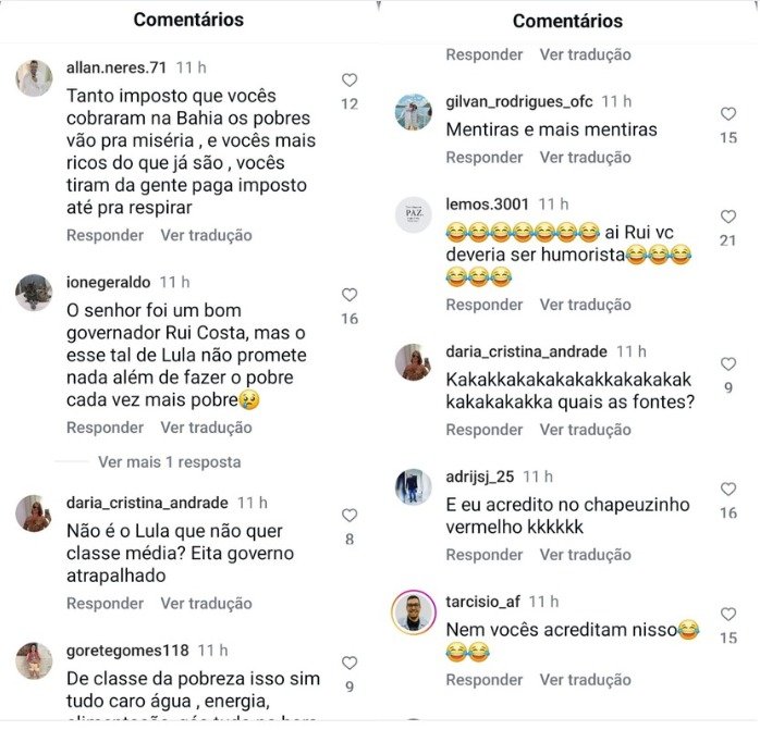 Como tudo que está péssimo pode se tornar abominável, a galera que segue Ruinzinho não gostou foi nada do "textão" comemorativo... Não que os seguidores tenham se dado conta de que - historicamente - a esquerda "odeia a classe média", mas porquê o povão - cujo a maioria nem sabe essa história do ódio - achou que Rui estava delirando! Diante dos altos preços dos alimentos, a carne caríssima, com mais de 19% de aumento em cortes considerados simples como o "patinho" e com a prometida picanha com o terceiro valor mais alto da história, os dados de Rui sobre a "evolução " para a Classe Média não foram bem aceitos pelos seguidores e o ex governador acabou tomando uma avalanche de críticas, além de muito deboche!